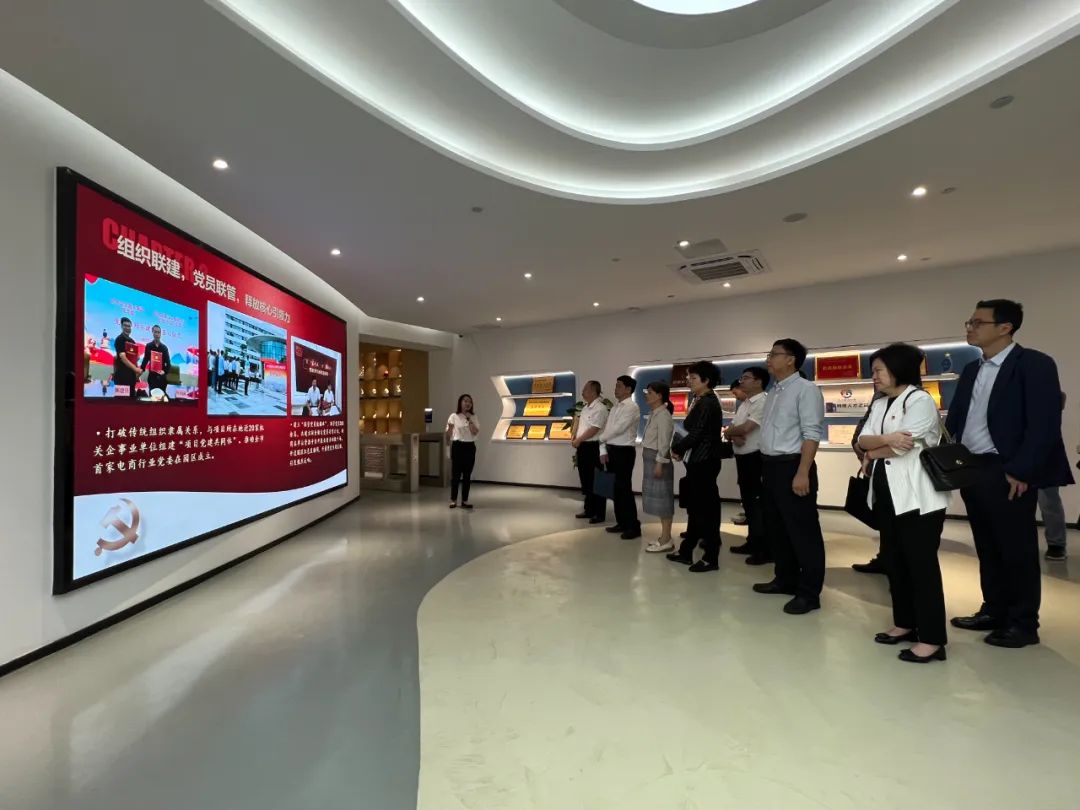 会议组织参观中国陶瓷电商物流园选品中心、物流基地、陶瓷艺术展厅,观摩泉州交发集团权属交发置业公司“‘红色纽带’连市县,‘八联机制’促发展”特色党建项目。